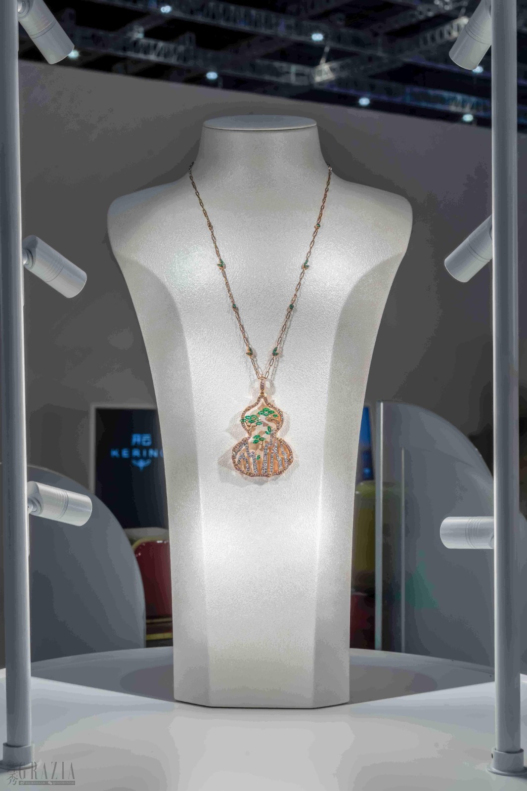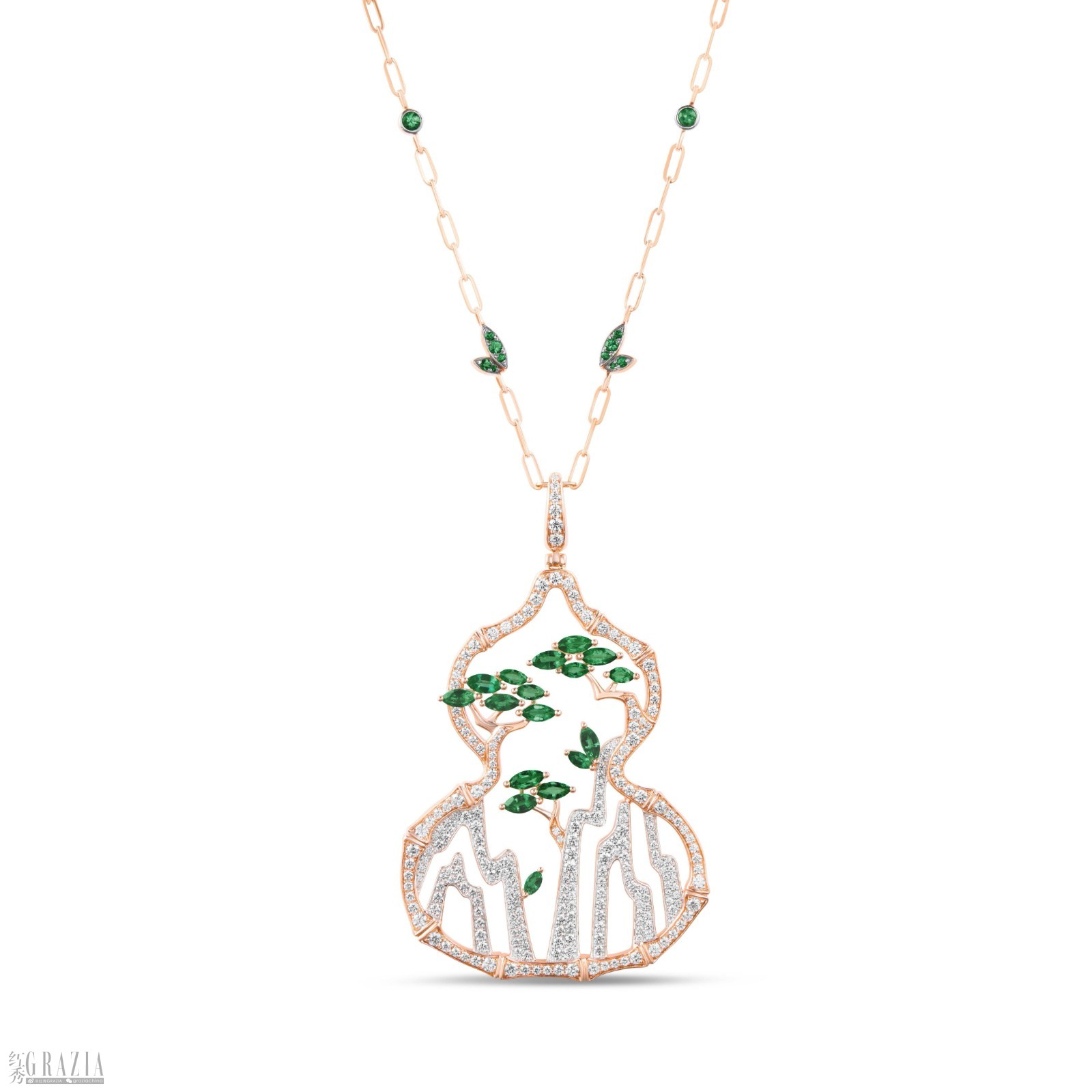 Qeelin Wulu Shanshui 高级珠宝系列 18K玫瑰金及白金,镶嵌祖母绿和钻石Mountain(松木)项链
