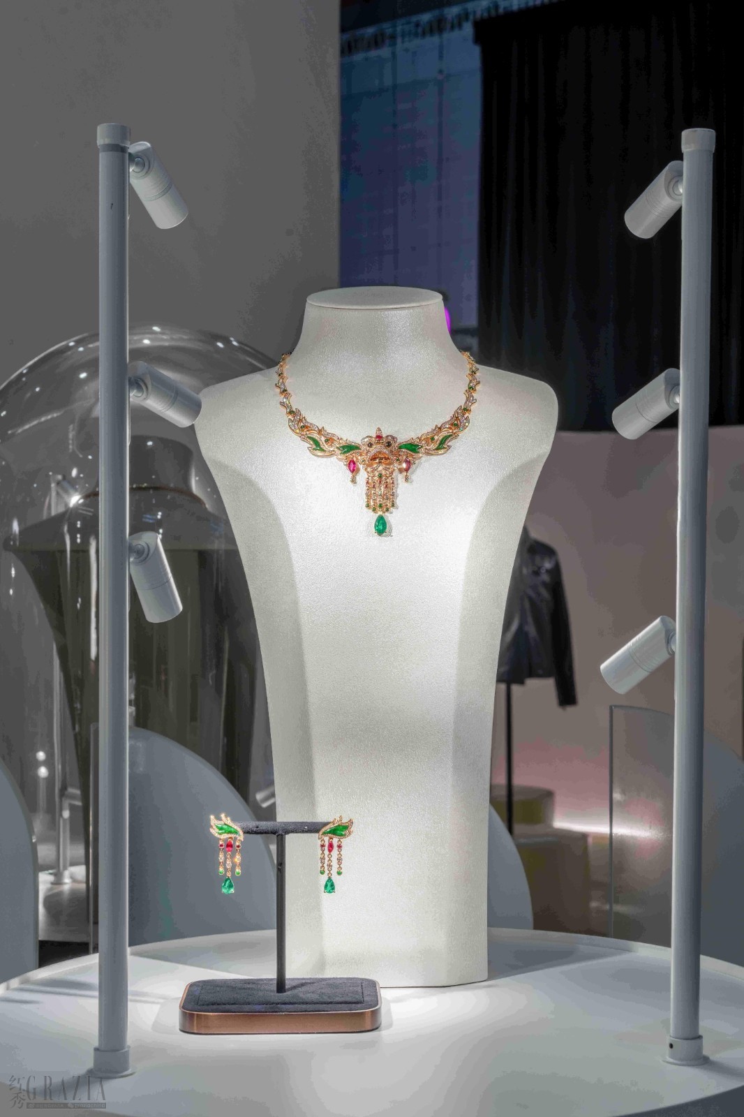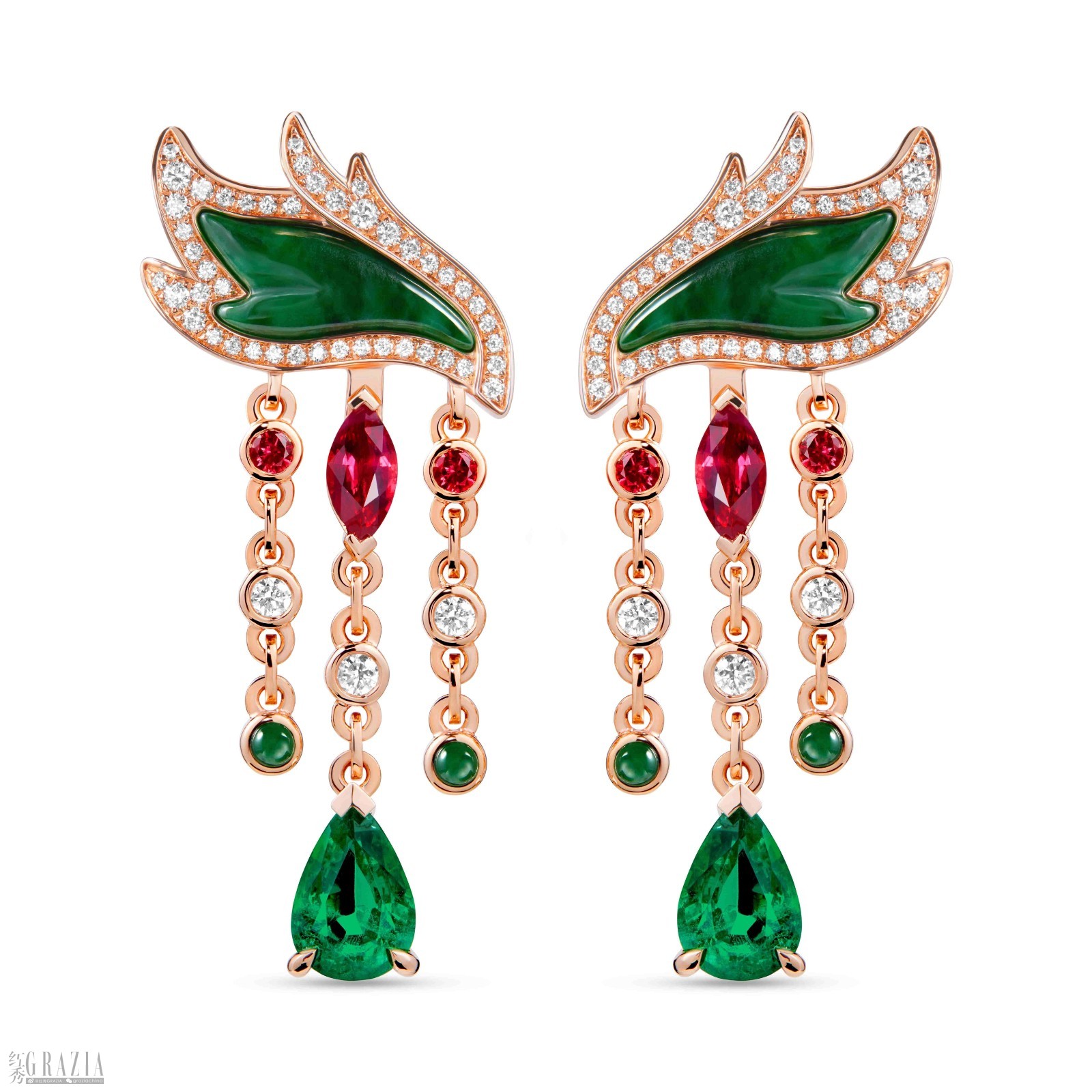 Qeelin Xi Xi 高级珠宝系列 18K玫瑰金祖母绿、红宝石、翡翠及钻石项链、耳环