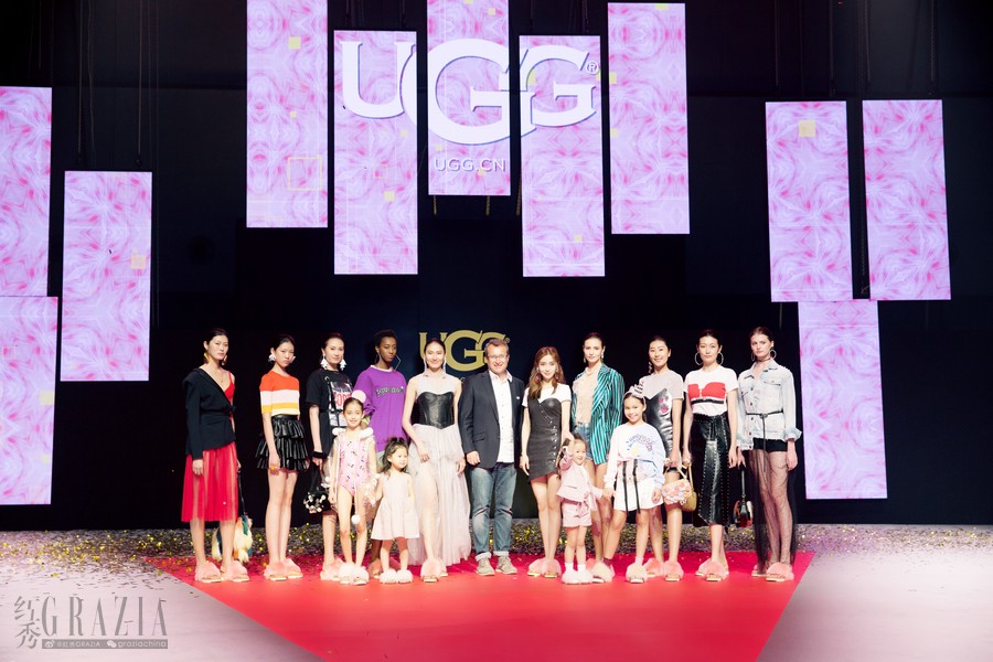 UGG®中国区副总裁及总经理Olivier Lorans、UGG®首位华人品牌代言人Angelababy与众模特合影