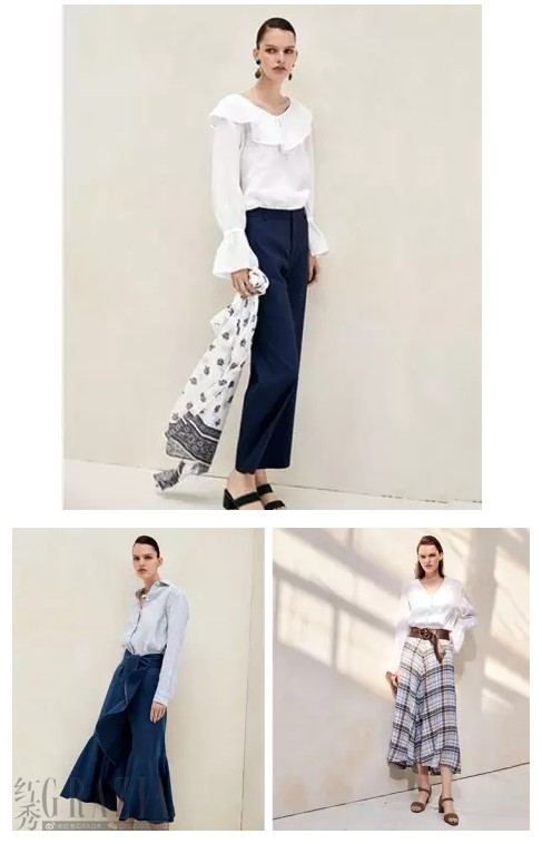 不管是荷叶边的V领,还是袖口的褶皱束口设计都充分展现了女性温柔优雅的独特魅力。此外,衣服侧面的开叉剪裁又增加了整体的层次感。