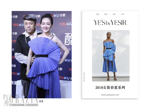 最近,在康熙停播两年后,小S和蔡康永再次合体做起了节目,在这个历史性的时刻,小S第一次穿起了国内独立设计师品牌YE'SbyYESIR的百褶大礼服,而恰好YE'SbyYESIR也是林志玲最常穿的独立设计师品牌。