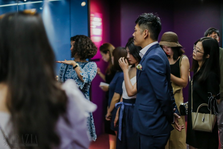 《鞋履:乐与苦展览》研究策展人Lucia Savi为三里屯太古里总经理余国安及嘉宾导览