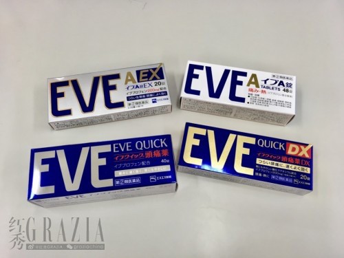还有大家都知道的人气药品EVE,但你还知道它实际上共有四款产品吗?主要针对月经疼痛以及头痛。其中蕴含有效抑制疼痛根源的布洛芬成分。除了布洛芬外,药物中还添加了烯丙异戊酰脲成分及无水咖啡因成分,都有助于布洛芬达到更好的止痛效果。