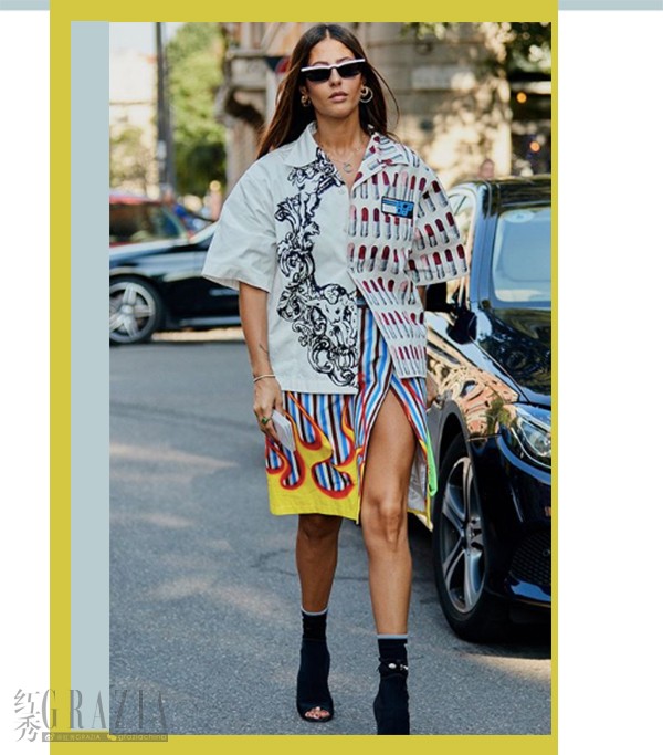 4.【花衬衫+花半身裙】