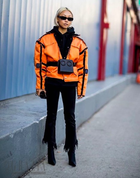 像这样帅气的皮毛夹克很适合冬天穿啦,娘man风了解一下!最想夸的还是橙黑色的完美搭配~