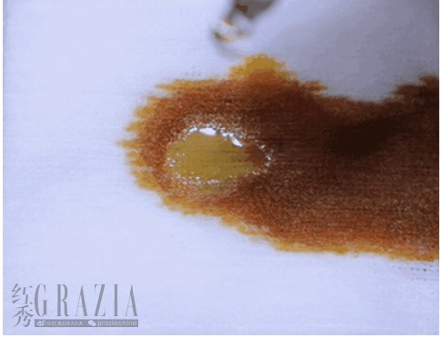 最后再说说抗氧化性,因为这款产品中有很多优秀的抗氧化剂,将精华油滴在沾有碘酒的化妆棉上,可以看到化妆棉上的碘酒有变色的现象,说明这款产品中有能够让碘酒变色的抗氧化剂。不仅如此,我们可以看到碘酒的变色的速度很快,而且是立刻变白,这种反应已经优于市面上大部分品牌的护肤品了。