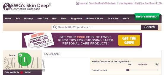 NATIVE BEAUTY 所含角鲨烷成份在EWG网站上评为1级最安全指标