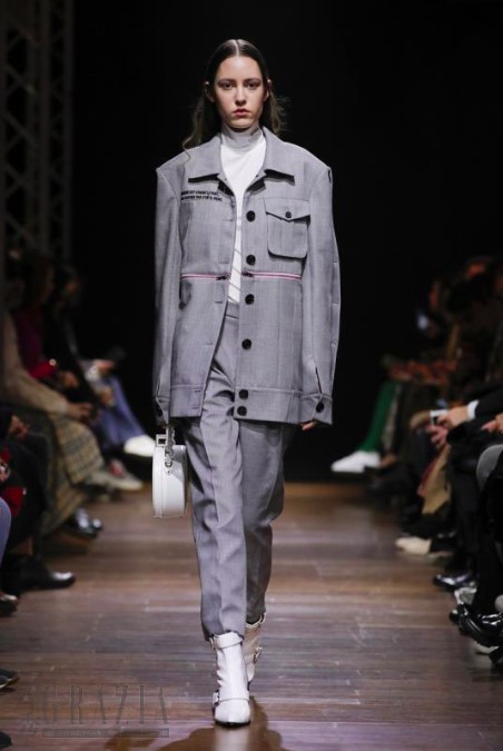 最后一个系列则更多的表现出来“收敛”,由跳跃的粉色转换到红棕色再回到最初的白色,变得稳重很多。材质上,选择了大量使用皮革,皮革自带特殊光泽感,运用拼接工艺,将不同的材质或是色彩组合搭配,碰撞出丰富的视觉效果,结构以及廓形得以丰富化。