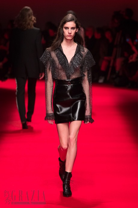 浪漫主义与性感鲜明的风格激情碰撞。长款斜裁连衣裙、修身夹克、蕾丝和亮片裙装。人造皮草和环保皮革夹克,亮片凉鞋和尖头靴。