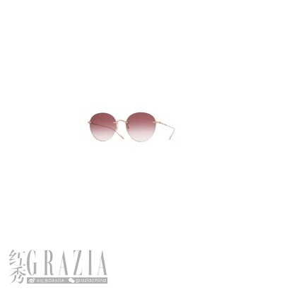 抢眼的超大无框太阳镜。圆形镜片凸显了明快的镜片色彩和雕刻在五金件上的全新几何花丝图案。