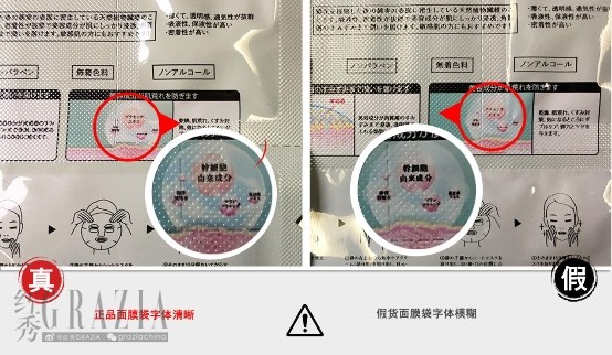 同样包装袋背面的字体也是这种情况,正品的字体清晰,而假货的字体模糊。