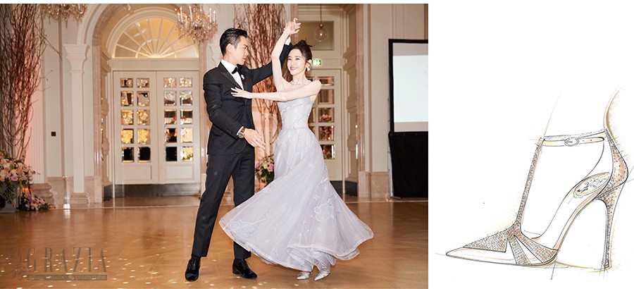 随后,唐艺昕亦身着René Caovilla定制款高跟鞋与张若昀共舞,尽显优雅与性感气质。精致的美钻点缀在鞋面之上,高雅华丽的银灰色亦流露出René Caovilla独一无二的奢华质感与传承百年的经典制鞋工艺。