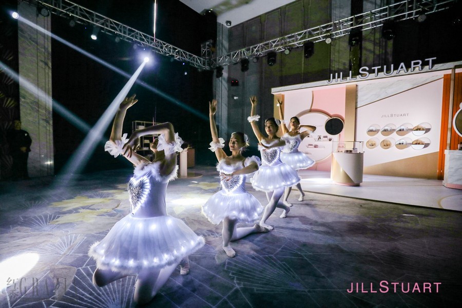 装点会场的粉色,与空间交织如梦如幻的时尚魅力,宛如踏步粉色的夏日海洋里。粉色的蛋糕、马卡龙等定制西点,无不透露出Jill Stuart 对粉色的宠爱。优雅曼妙的粉色芭蕾舞、精彩的咖啡大师拉花,沉浸粉色的世界里,让温柔的少女心灵动跳跃,享受每一个浪漫美好的时刻。