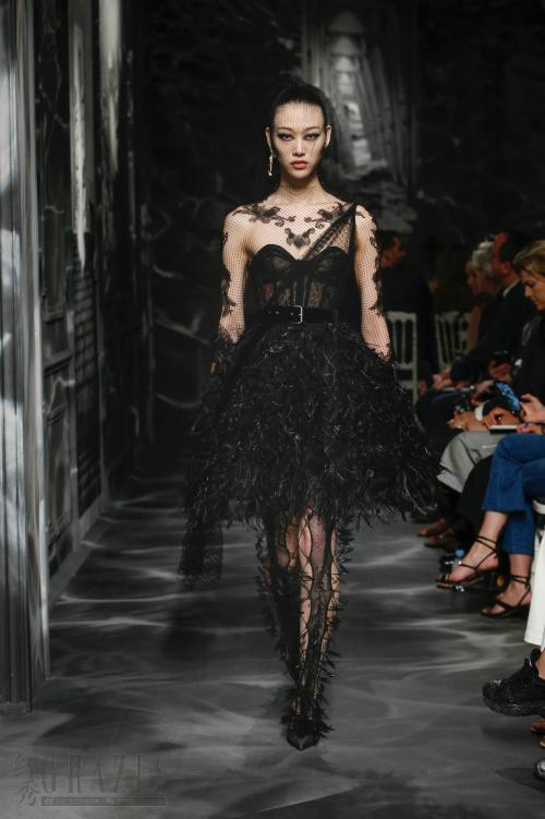 她们肩负着世界的重担,就像当代女像柱(CARYATIDS)雕塑一般,这些雕塑体现了女性的形态,身披线条流畅的束腰外衣,或是支撑着古代寺庙建筑,亦或是装饰着某些巴黎风情建筑。正如此系列中的白色连衣裙,黑与白看似两极却又相辅相成,玛丽亚·嘉茜娅·蔻丽探索着黑色的多元化力量。