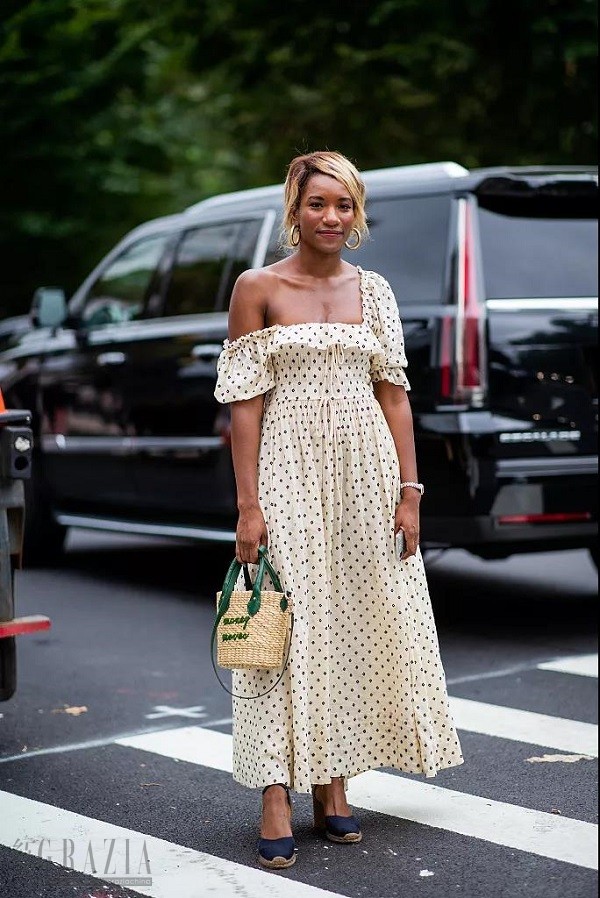 搭配上连衣裙也是相当时髦好看~ 真的可以说是夏天的百搭款。