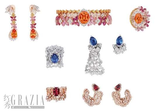 Dior Dior Dior顶级珠宝系列问世:灵感源自高订时装上繁复精美的蕾丝细节,经过精心切割与雕琢,幻化为色彩绚丽的顶级珠宝。巧妙改造的编织结构,加上交织缠绕的藤蔓图案,确保“蕾丝”可以随意组合变幻,打造出造型各异的项链、戒指、手链或耳环。