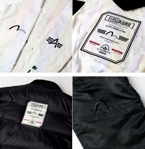 值得一提的是,飞行夹克中还保留了Alpha Industries最标志性的细节,链头上的“REMOVE BEFORE FLIGHT”红色飘带;专属夺目的红色飘带不仅展现了品牌对航空业的致敬,也通过对经典元素的传承去表达EVISUKURO和Alpha Industries对潮流的态度。