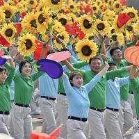 19方阵 “创新驱动”、20方阵 “区域协调”、25方阵“中华文化”、26方阵“立德树人”、28方阵“脱贫攻坚”、29方阵“美好生活/美好家庭/时尚生活”、30方阵“绿水青山”以及庆典群众游行序言部分领唱儿童服装设计与制作皆由Cabbeen卡宾承担。
