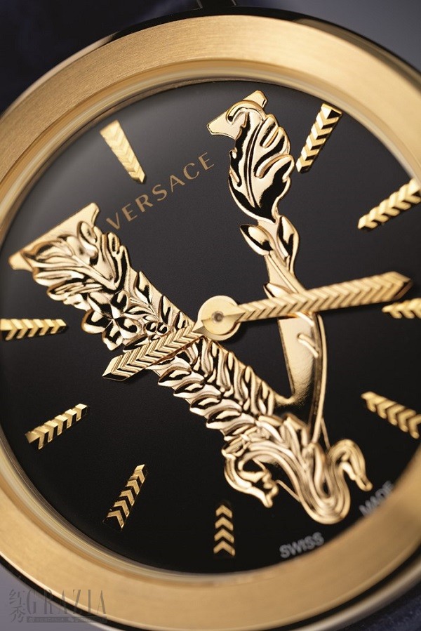 Versace Virtus的灵感汲取自品牌美学中的一项基本元素:对巴洛克风格的重新诠释,并透过表盘中央复杂精致的大型V字淋漓尽现。另一方面,现代感的纤薄表壳设计则强调12点钟位置的品牌标志重要性。