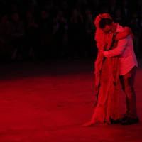 是夜,黄浦江边百年工业遗迹上,无边潮绪潜匿于大地之下。时装、艺术、音乐完美交融,曾经的热火朝天与废弃后的寂静苍凉同在,实验性的艺术光芒如荒野中的星星之火,与黄浦江对岸的满城都市繁华遥相呼应,生而荒野的野性力量肆意蔓延,伴随着巨大的心形艺术装置,聆听来自大地的召唤,那亦是达衣岩Donoratico不断打破边界,力求创造未知的品牌态度。