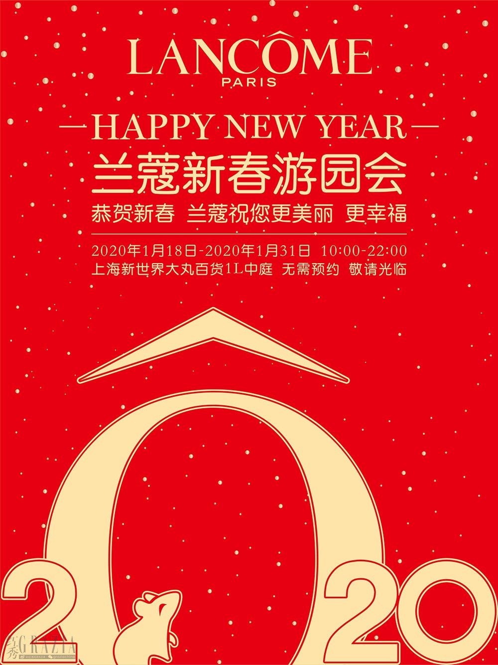 灵感自中国新春习俗,以全新摩登的创意和表达,兰蔻惊艳打造新春游园会,并在全国展开盛大巡回。步入其中,焕新颜、赏新景、送新愿、玩新意、享新礼……畅游新春游园会的美妙乐趣,尽享美丽幸福的新年时光。2020年1月18日至2020年1月31日,兰蔻新春游园会上海站正式启幕,上海新世界大丸百货1L中庭,无需预约,敬请光临!兰蔻新春游园会,上海、北京、广州、深圳、成都、西安站现已全部开启,六城联动,恭贺新春!