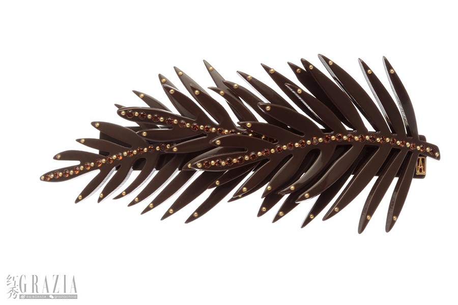 除了规整的萼叶形状,Alexandre de Paris棕榈系列发夹以叠加设计和悉心雕琢的纹理描摹出饱满而立体的生命力,同时将轻盈质感拿捏得恰到好处,缀于发间奋力舒展,明亮而耀眼,奢华而高级,勾勒与众不同的隽永姿态,绽放无与伦比的和谐之美,从不同角度欣赏观感也大不相同。享受被万千目光宠溺的你,一定无法决绝这种与生俱来的吸引力,无需刻意在服装上浓墨重彩,只是简单做个造型,你一样是现场最闪耀的存在。