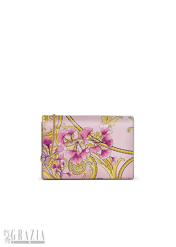 精致的银杏叶披上柔美粉色,巧妙结合Versace的经典元素,点缀各款女士和女童时装。妩媚优雅的造型亦完美配衬饰以浪漫银杏叶印花的柔软皮革手袋,包括Virtus小型手袋款式。
