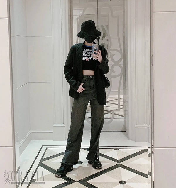 对于二次元酷女孩来说,all black是日常标配,许佳琪会用一点点露出来增添性感元素,比如露肩或者露腰,即使是全黑也不会显得无趣。