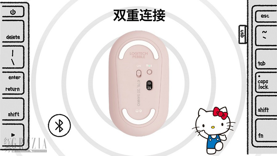 约78g重,约6mm高。无论是旅途、学习还是工作,罗技Pebble无线鼠标Hello Kitty系列小巧玲珑的身型都能陪你记录下每一个点滴。保持纤薄优雅的鹅卵石外形的同时,Pebble还兼顾了贴心舒适的手感。芍药白、茱萸粉经典底色搭配粉红Q萌的手绘Kitty猫,简约而不失时尚,便携高效,这个夏天,让Hello Kitty为你带来满满的活力。