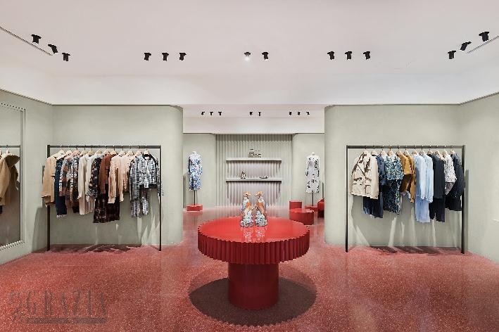 材质的选用对于CARVEN来说一直都是构成店铺风格的重要关键。绿色石膏粉刷的白色墙体是设计的一大特点,在视觉上起到了“软化”的作用,上乘的建筑材料与极简主义风格的细节形成强烈的视觉表达,与简洁的空间设计线条呼应。简约舒适的室内空间被分为两个主要的区域,安置的红漆家具营造出了愉悦与轻松的视觉氛围,给人以美的享受。让人感觉仿佛置身于20世纪30年代的现代主义建筑。