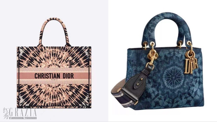 时任迪奥Dior 女装艺术总监的 从 Christian Dior 所收藏瓷器上的花朵图案出发,创作了如万花筒般的迷幻图腾。迪奥Dior 于2019年首次以 Tie & Dior 系列呈献扎染艺术,乘着今年强势回归的「扎染(Tie-Dye)」潮流,释出Tie & Dior 系列新品,将多种手袋、服饰 、配件等换上独特的扎染图纹,打造一系列绚丽又精致的吸睛单品。