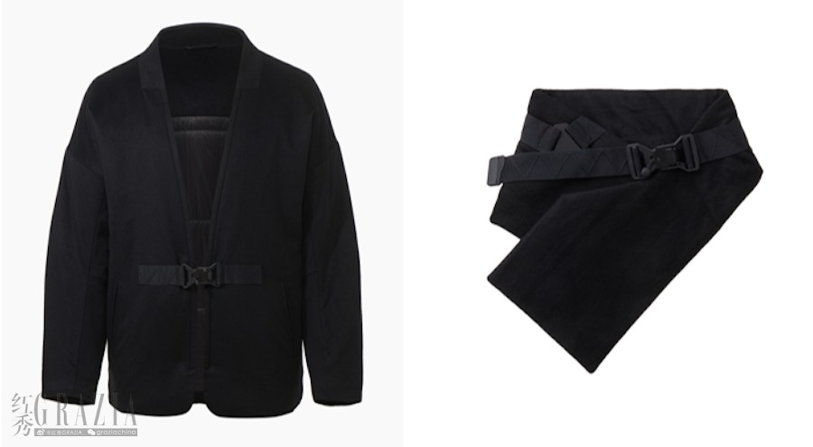 表布选用优质羊绒面料,搭配内里羽绒填充,两种面料的使用让羽绒服更显质感。同时,高密度面料也帮助实现了轻便保暖无车线的剪裁,搭配无领与落肩的时尚版型设计,更显产品版型独特与走线流畅。替代传统纽扣设计,本次采用了FIDLOCK 德国搭扣,使羊绒的优雅与时尚机能风的设计相得益彰。