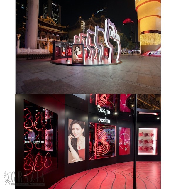 为迎接农历新年的到来,Qeelin在久光百货广场更精心打造了以“新年献瑞,福运连连”为主题的快闪展览。展览以中国特色的剪纸艺术为灵感,以Qeelin红为主基调大肆渲染,一袭耀目赤色在在广场上铺陈开来,葫芦、风车等造型,如展开的折纸各呈姿态。以谐音“福禄”的品牌经典Wulu系列为原型而设计的风车装置贯穿整个展览,营造出欢乐福瑞的节日氛围,源源不断的传递美好的新年祝福。层层竖立的葫芦长廊,与地面铺设的葫芦放射波图案遥相呼应,寓意福运连连。Qeelin通过精妙的艺术巧思,将多种多样的中华传统文化元素以现代美学方式一一呈现,更显摩登,体现Qeelin独一无二的品牌匠心。