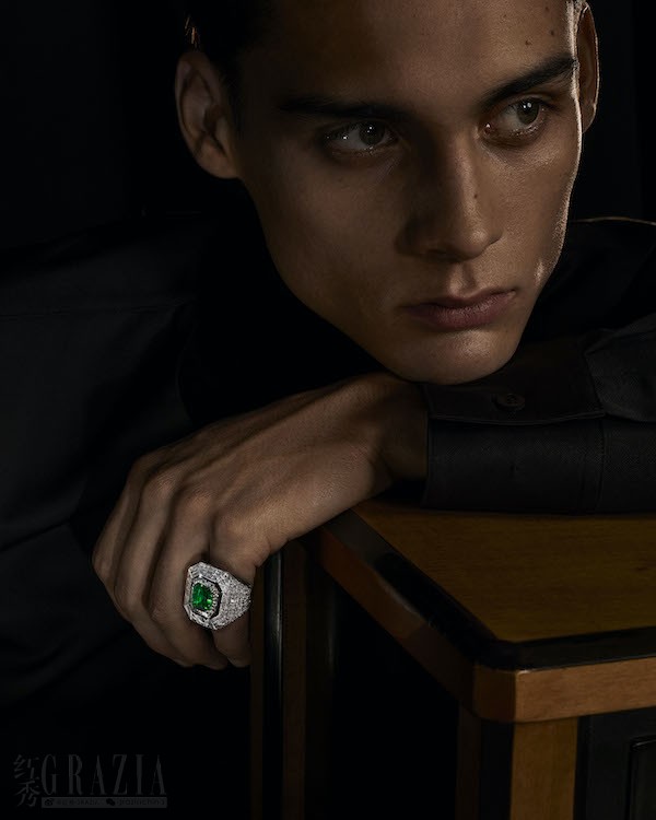 木佐祖母绿,宛若一枚徽章点缀指间。设计总监Claire