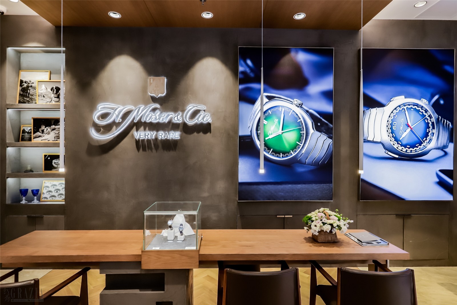 亨利慕时新店遵循品牌极简空间的设计理念,品牌瑞士总部巧妙利用材质特性与简洁线条,营造简约又充满现代工业风格的空间,彰显亨利慕时品牌独树一帜,兼具传统与现代的美学意蕴,及追求既传统又不依常规的制表理念。