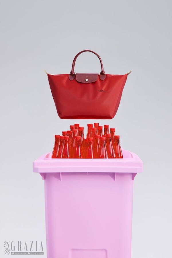 那这里究竟是怎么回事呢?请将焦点转回剧中关键道具——会“超级变变变”的魔力回收装置。它象征着珑骧“变废为宝”的环保理念:全新Le Pliage® Green创新使用的再生尼龙面料,正是由废弃的渔网、地毯、尼龙袜、绳索等经过特殊工艺加工而制成的。它不是一款简单的包袋,它是LE PLIAGE ®。