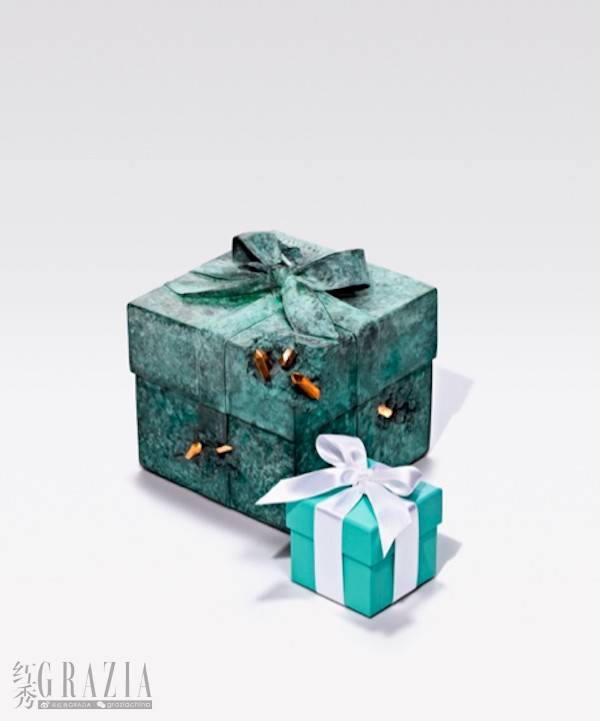 阿尔轩“未来遗迹 (Future Archeological)”系列,通过对未来世界的大胆构想,创新演绎日常生活物件;而这款犹如青铜腐蚀过的蒂芙尼蓝色礼盒则是艺术家对这一艺术概念的全新诠释。阿尔轩以铜绿元素与腐蚀质感巧妙联结过去、现在和未来,将蒂芙尼经典包装幻化为富有雕塑美感的艺术作品,赋予其原生与精雕、隽永与现代并存的独特面貌。而此次合作的49件艺术作品,以无限的时间张力重新演绎蒂芙尼百年传承的历史,再现其于当代文化中不可或缺的地位。
