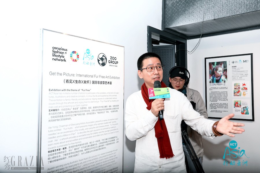 展览云集了,来自沈阳市美术家协会主席、艺术家解勇、屡屡获奖的青年插画家施暖暖、LCF伦敦时装学院设计与技术学院副院长John Lau刘国峰以及LCF老师与学生联合创作的诸多形式各异的艺术作品。活动旨在通过艺术所带来的强烈震撼力与传播力,以情感同理、触觉与视觉的冲击等方式,令观者感同身受,以全新角度向观众们诠释了“可持续时尚从零皮草开始”的理念,帮助人们在消费时三思而后行。