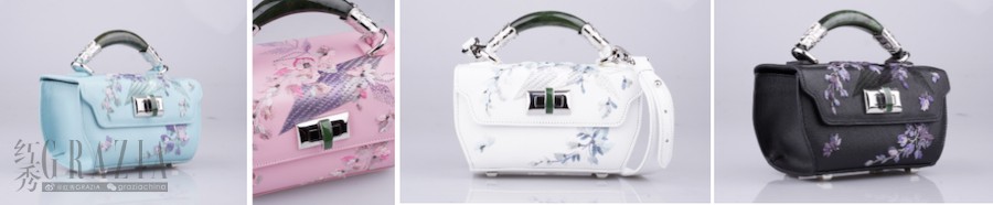 夏姿陈SHIATZYCHEN早春系列【茁韵】绣花刺绣山羊皮玉镯提包