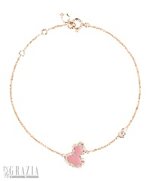 Qeelin Petite Wulu 18k玫瑰金钻石及粉红色蛋白石手链
