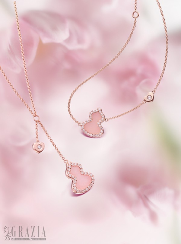 Qeelin Wulu520粉红蛋白石系列,采撷18K玫瑰金与粉红蛋白石的温润光芒,配以熠熠生辉的钻石