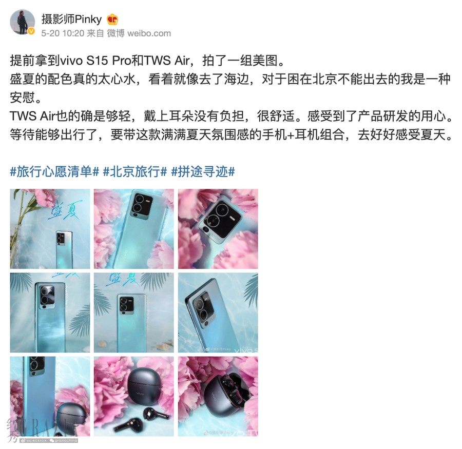 结合各大摄影、数码博主分享的真机实拍图来看,清爽的盛夏蓝和夏天的明媚简直绝配,高级中透着一丝夏日清凉感,让人仿佛置身海边一样。机身玻璃表面的晶体结构,在阳光下,细腻而又耀眼。手持一部vivo S15系列质感直线升级,妥妥的搭配神器!