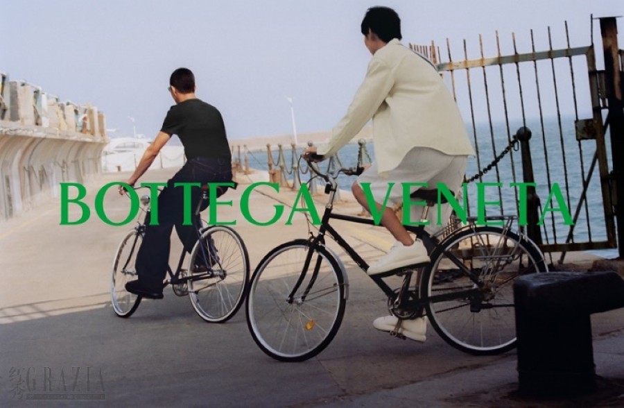 BOTTEGA VENETA七夕主题短片中,两位主角穿着PILLOW运动鞋骑行穿梭于青岛的海滨风光,PILLOW运动鞋的骑行“动态“与人物的细腻情感及鞋履舒适简单的特质交相呼应,为BOTTEGA VENETA WINTER 22系列“安静的力量”这一主题再做延伸与呈现。