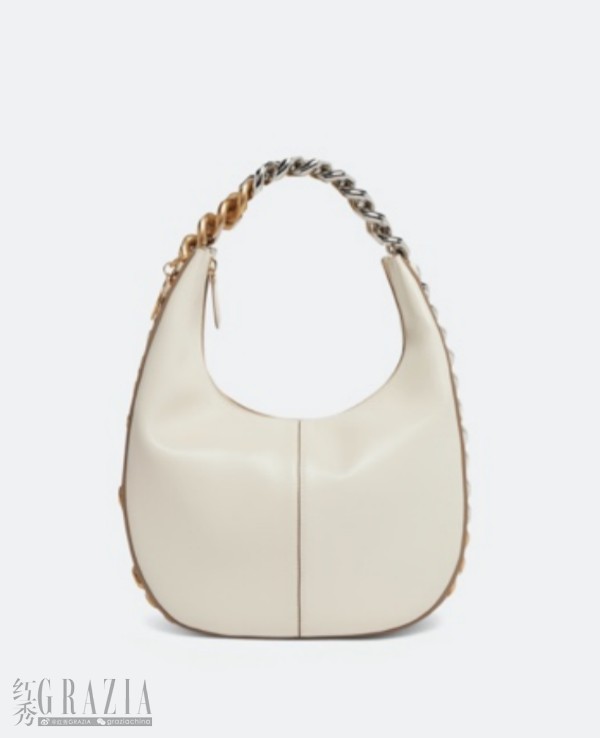 Stella McCartney Frayme迷“链”手袋以可持续植物材质打造,运用大胆风格焕新演绎,为这一甜蜜时刻注入新的活力。包身配以经典的金色和银色混色电镀链带以及标志徽章,采用纯素材质,于意大利手工制成。作为传承品牌“零杀戮”以及“环保意识”的又一经典力作,本季推出月牙形肩背包,选取优雅白色与裸色系,传递纯甄情意。
