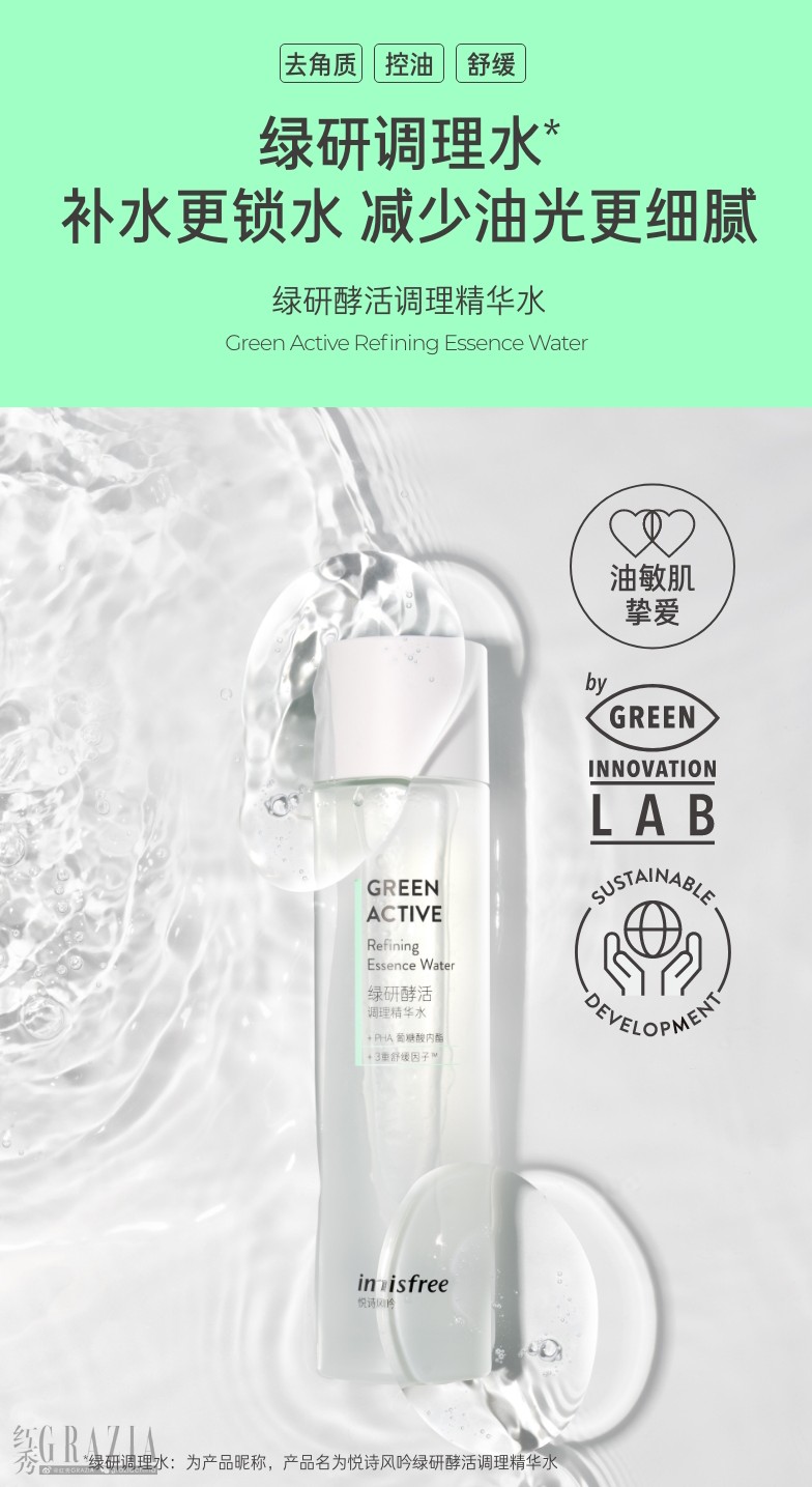 绿研调理水和绿研修护乳可以帮助调节肌肤水油平衡,舒缓修护脆弱的肌肤。专业测试机构的功效测试结果显示,使用绿研调理水4周后,100%消费者认为可以令油性肌肤维持平衡的水油状态,皮肤纹理变得细腻、皮肤更光滑;使用绿研修护乳4周后, 100%受试者认同皮肤干痒、暂时性泛红、不适得到改善,肌肤屏障得到修护,肌肤的刺激感一定程度上得到减轻。
