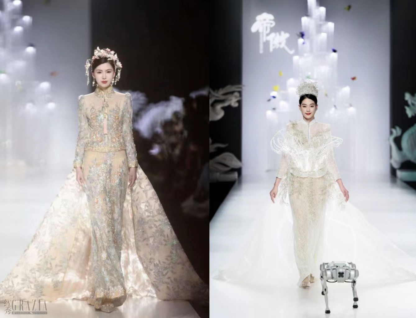 3月25日,絮笙 · 2023AW·【锦色】盛典开秀,大秀以传统纹样嫁衣布料锦缎与现代东方美学色彩碰撞,叙述了一个将传统秀禾嫁衣,汉服为基础的国风嫁衣,以及改良秀禾,汉元素融为一体的故事,面向世人全方位展示了来自传统东方女子嫁衣的魅力。
