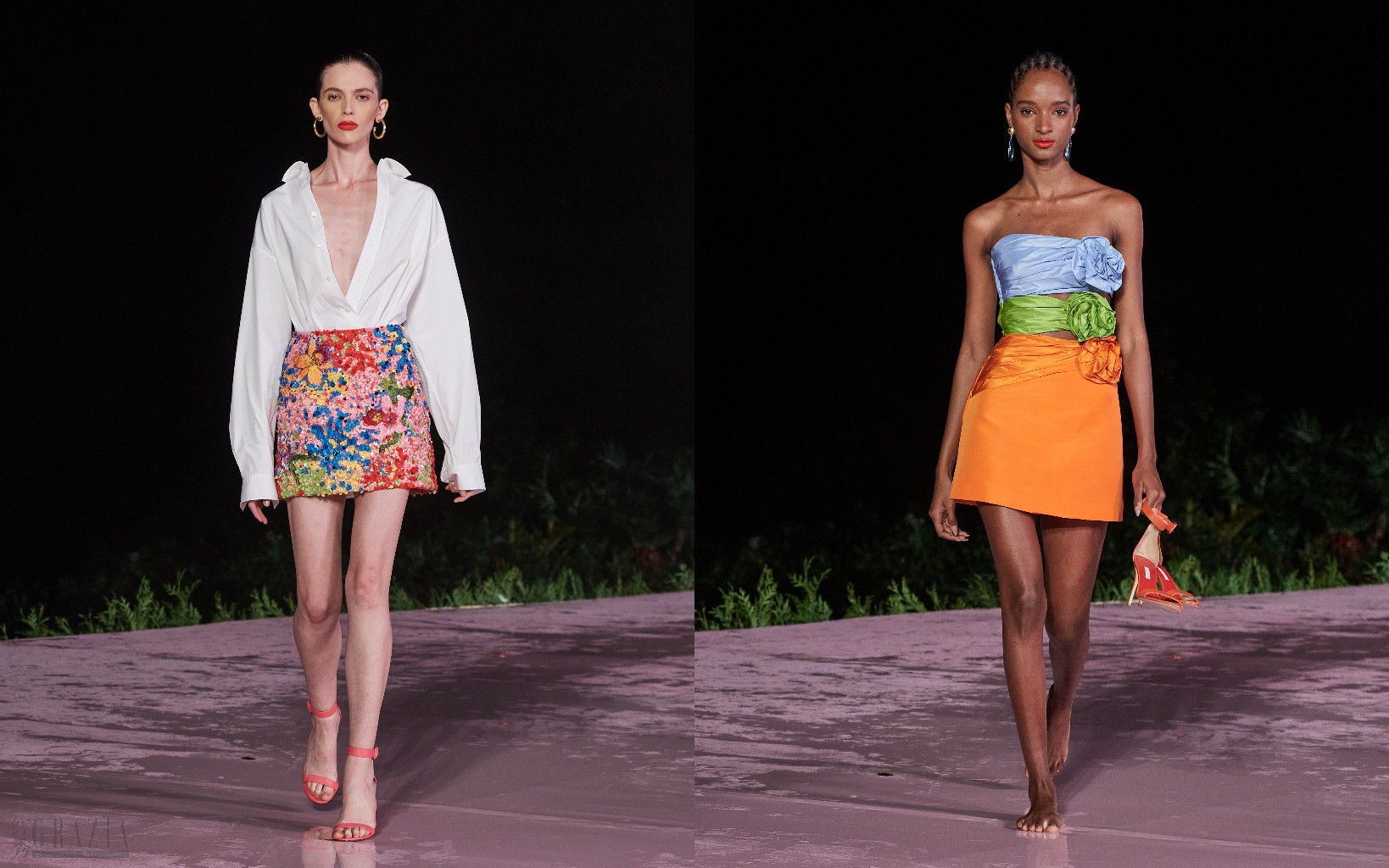 创意总监Wes Gordon通过不同比例、构造以及将彩虹般的色系注入标志性的纽约黑色,再度以全新方式重塑Herrera的品牌标志。经典的棉质衬衫剪裁比例被大幅放大,下身搭配纱笼般的垂地裙。波点图案以鲜明的色调诠释在男装风格的丝绸衬衫及裤子,搭配同款比基尼上衣。镂空棉布以充满活力的绿色、漆红色和黑色呈现,剪裁成引人注目的鸡尾酒裙,伞裙以及礼服,为华丽的单品增添轻松自如的氛围。