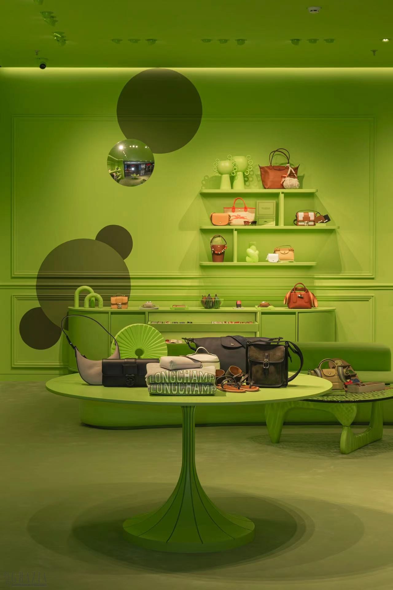 全新概念店铺以明亮活力的珑骧绿为主色调,加以简约的线条与开放式的布局,为顾客提供更加开阔的视野,以及独特时髦的购物体验。除摩登的家具和艺术书籍外,独特艺术装置也为精品店增添了个性化气息。以品牌经典的Le Pliage饺子包与标志性珑骧绿为灵感,结合镜面装置打造出无限视觉空间。当沉浸式艺术装置来到店内,随处可见的互动式打卡细节,体验与艺术的零距离,解锁独一无二的打卡创意,创作你的活力瞬间!