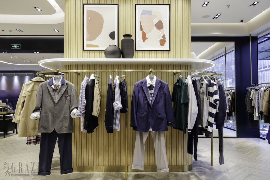 Brooks Brothers全新门店坐落于地理位置优越的上海静安嘉里中心二层,全新的设计理念将都市现代气息融入店面设计之中。全新空间将美式经典与现代巧妙融合,营造经典摩登的室内氛围,浅色石灰岩地板搭配米色调空间相得益彰;品牌标志性蓝色嵌入整体空间之中,增添独特魅力。
