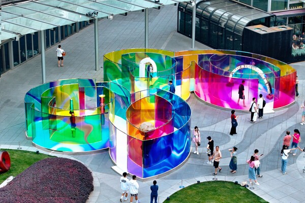 由春入夏之际,成都IFS带来全新沉浸式艺术体验,本次的装置将北斗七星的光线覆叠重塑为实体形态,七彩色的绚烂光影互相映衬,伴随如同穿梭星球间的灵动音符,充满互动感的设计与引发深思共鸣的主题内容,揭示了宇宙与生命的多维面貌,在城市中心开启本真而热切的自我追溯之旅。